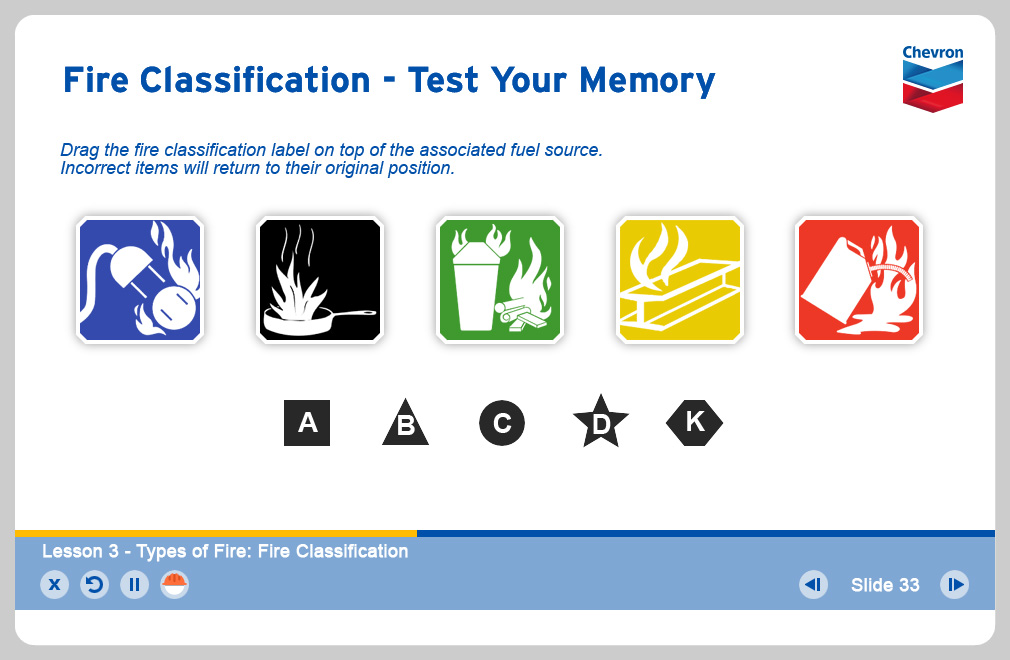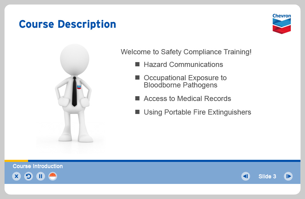 The Refinery Safety series of courses were designed to teach refinery personel the safety standards for operations in and around the refinery. Users were coached throughout the series by "SHEP", a cartoonish character that explained processes and procedures in a serious, but friendly manner. A variety of activites were created to engage learners and respond to situations they might encounter while on the job.
